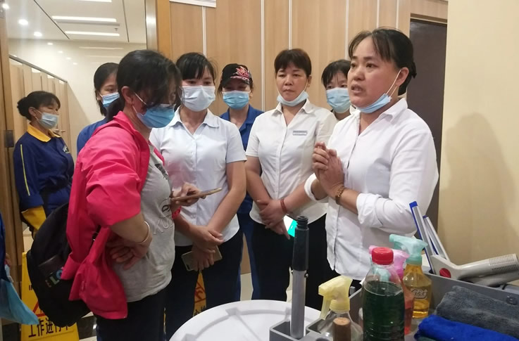 山水公司會安排專業(yè)的有資質(zhì)的教學(xué)老師來教導(dǎo)前來學(xué)習(xí)的保潔師,從三個方面對保潔師進(jìn)行培訓(xùn):一、崗位技能培訓(xùn),包括規(guī)范的作業(yè),熟練使用專業(yè)的工具;二、服務(wù)態(tài)度的培訓(xùn),保潔也是服務(wù)行業(yè)之一,作為保潔師也應(yīng)該具有服務(wù)意識,同時也注重心態(tài)的培訓(xùn);三、安全知識的培訓(xùn),注意車輛、電器的使用等等。